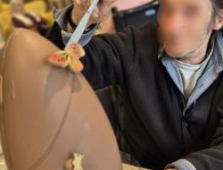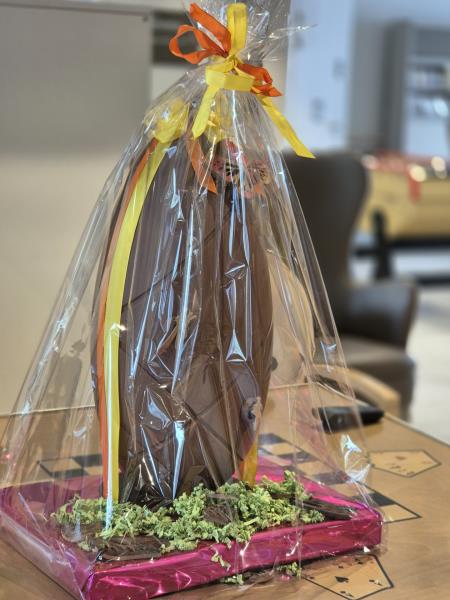 Cette année encore, pour notre plus grand plaisir, nous avions à estimer le poids d'un gros œuf de Pâques fait par un chocolatier et le gagner si nous tombions juste.