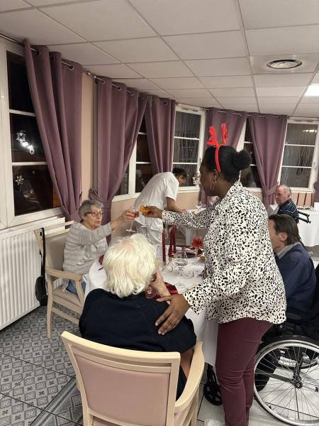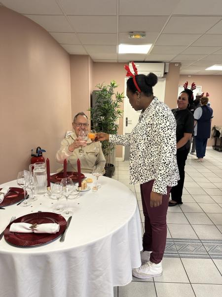 En ce réveillon de Noël, la résidence s’est remplie d’une atmosphère toute particulière, faite de douceur, de partage et de sourires. Toute l’équipe s’est mobilisée avec cœur et générosité pour offrir à nos aînés un moment unique, à la hauteur de cette fête si précieuse. Les tables joliment dressées, les décorations soignées et les attentions portées à chaque détail témoignaient d’une seule intention : faire plaisir et créer de beaux souvenirs.