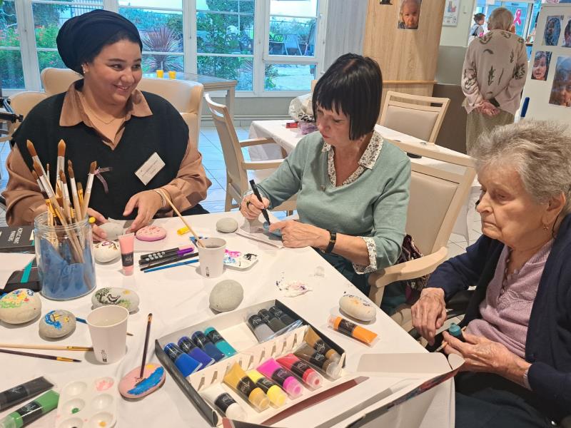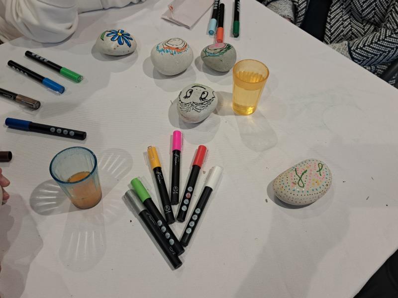 Les activités du jour portaient sur des ateliers créatifs (peintures sur Galets, Collage avec pompons) et un atelier bien-être esthétique ( manucure avec pose de vernis) .