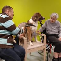 Publiée le 15/01/20192 fois par mois, Mme LECUYER, Zoothérapeute et ses chiens TOUKY et NILLA viennent donner un peu de douceur à quelques résidents ;" jouer " avec eux même si le jeu n'est qu'un support a but thérapeutique pour les résidents participants (amélioration de la motricité, relati [...] Lire la suite