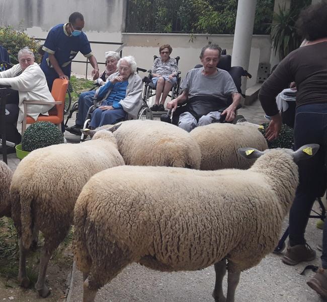 Qui l'eut cru ? En pleine ville, à la résidence Les Jardins d'Epinay, la transhumance est passée... Étonnement et ravissement dans les yeux de nos résidents, familles et personnel...